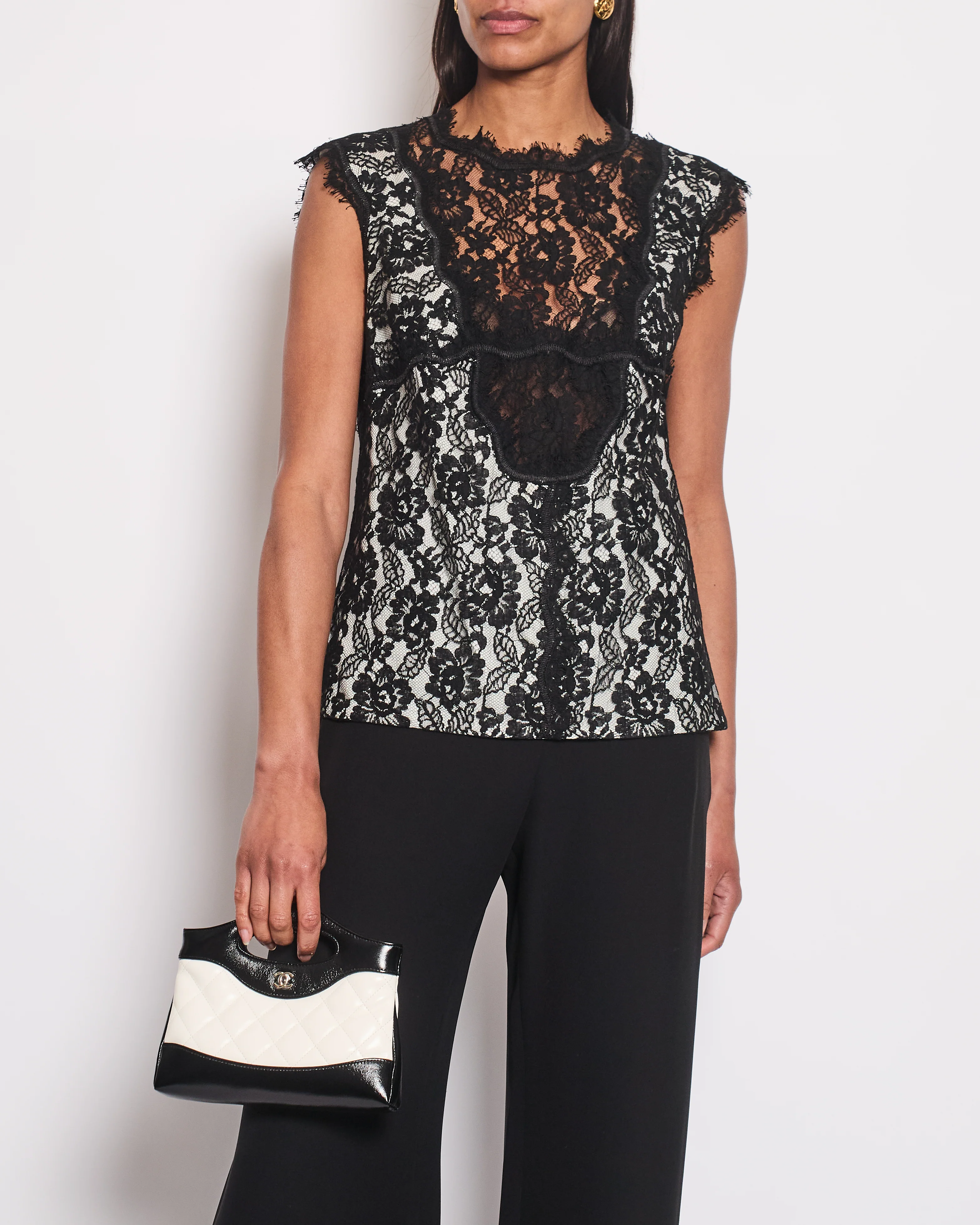 Chanel 14C Black Double Breasted Lace Blazer with Matching Short Sleeve Vest Size FR 42 (UK 14)