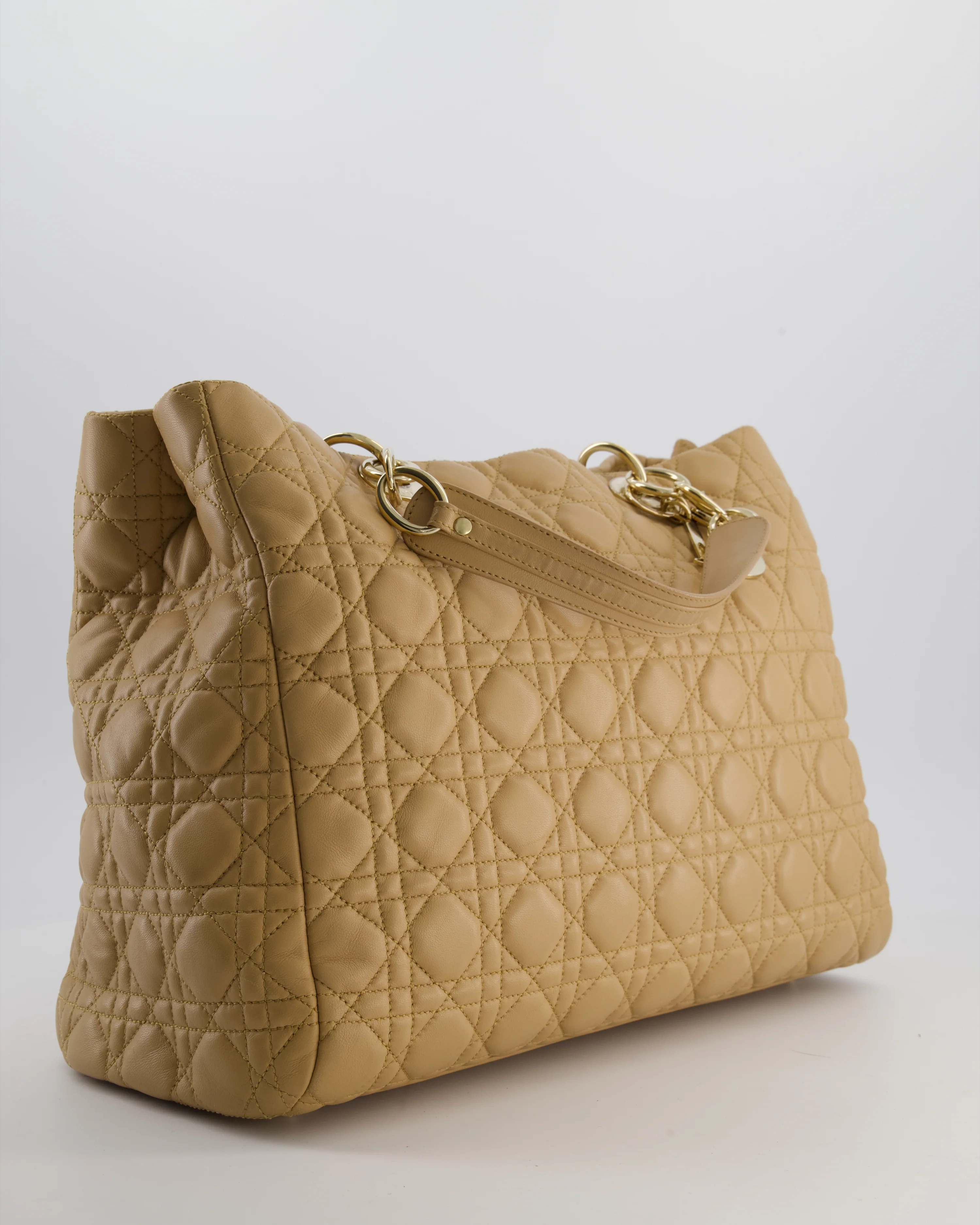 Christian Dior Cannage Tote in Beige Quilted Lambskin with Champagne Gold Hardware