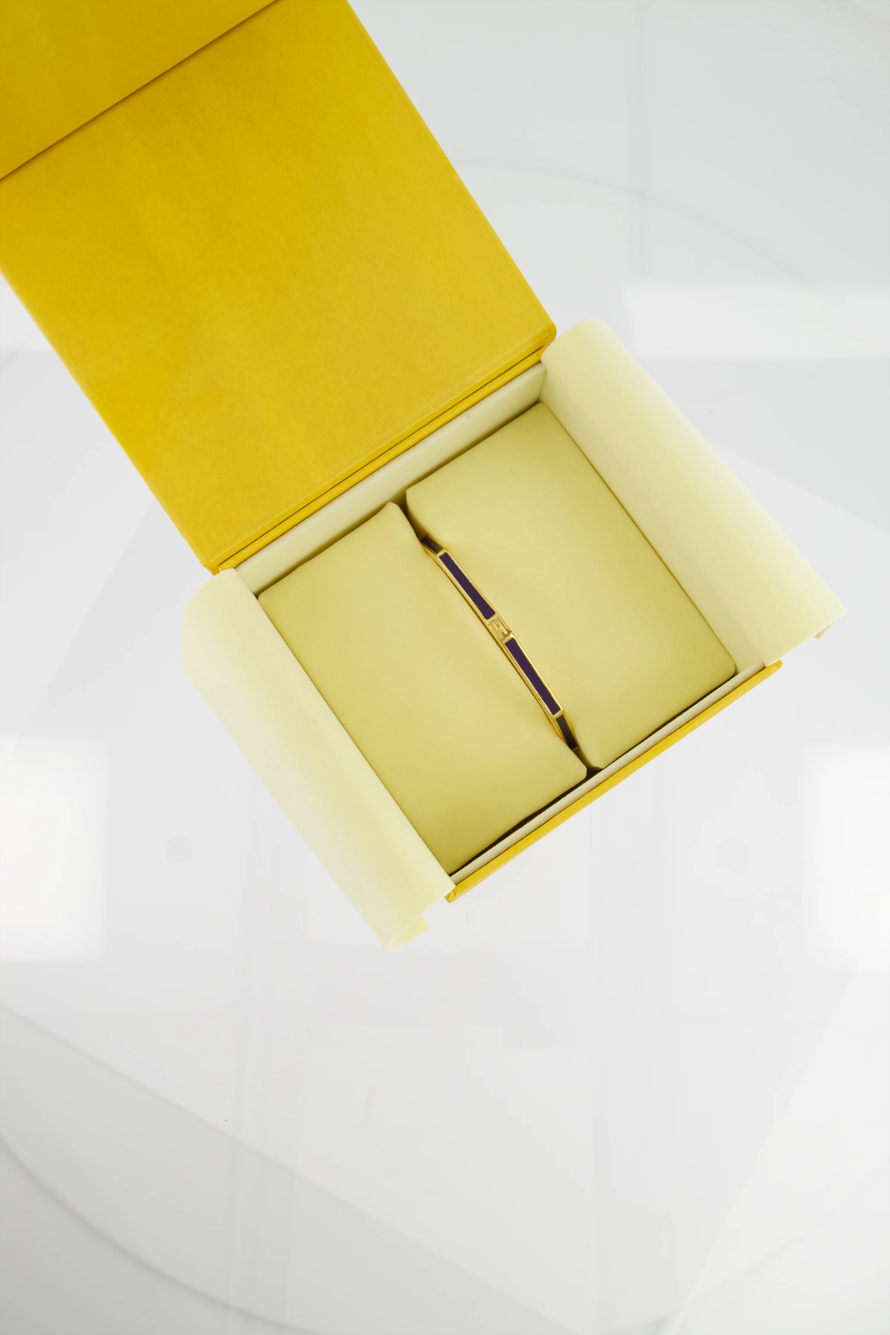 Fendi Gold Enamel Hexagonal Baguette Bracelet with Purple Enamel Detail Size M