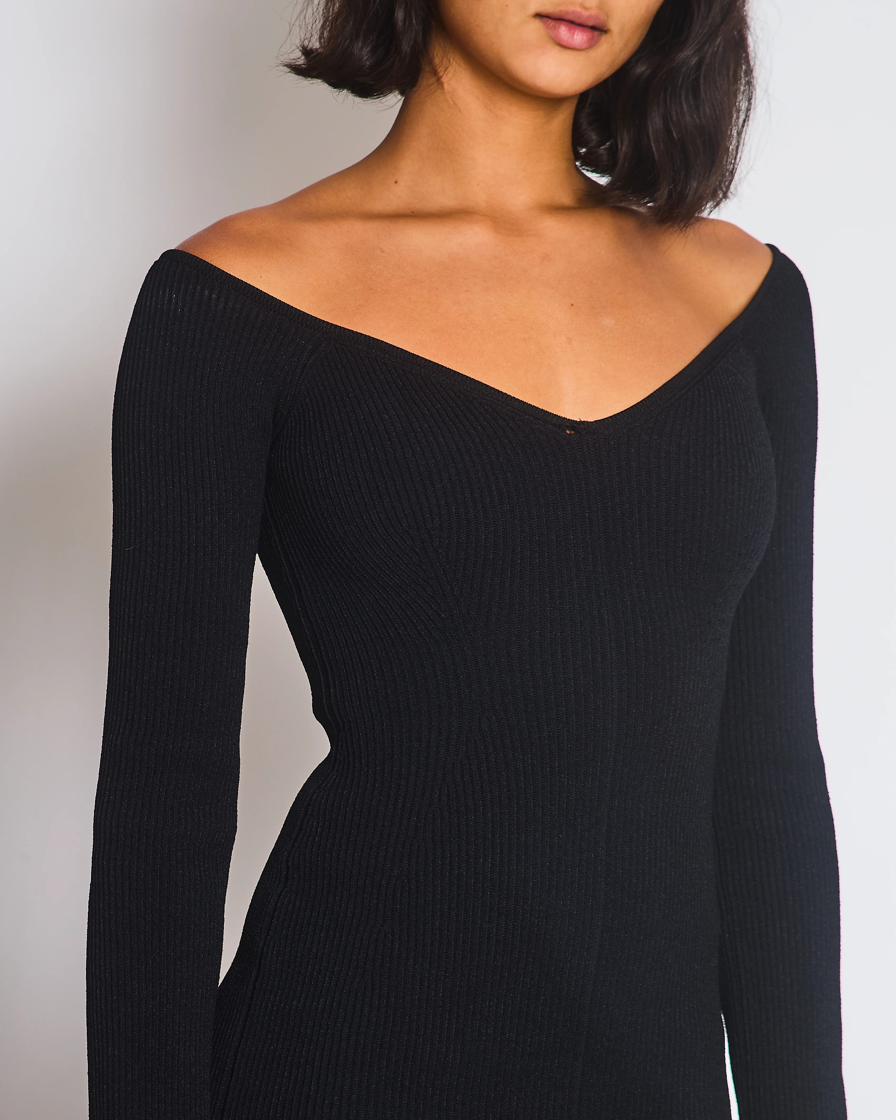 Khaite Black Ribbed Long Sleeve V-Neck Dress with Split Detail Size S (UK 6/8)