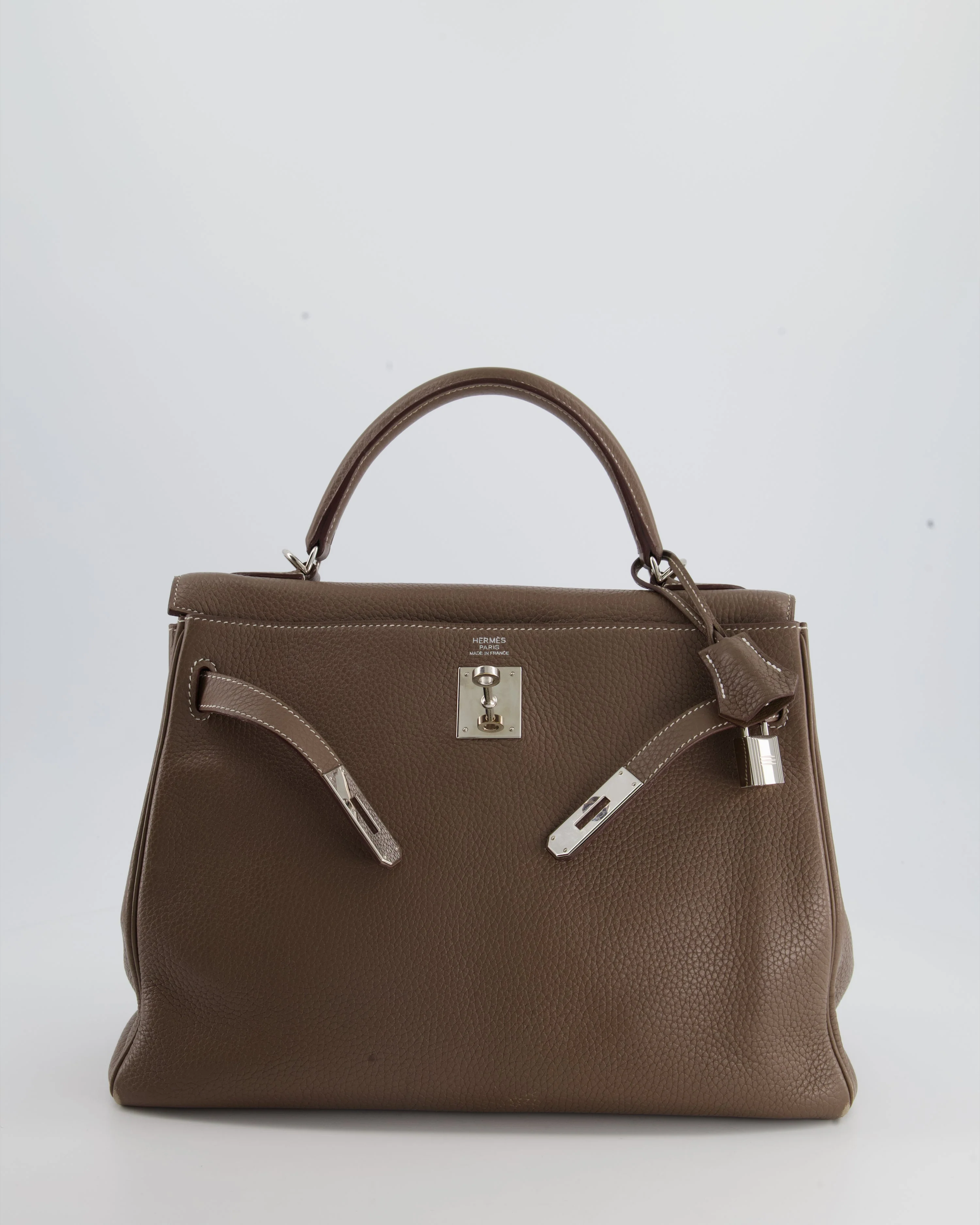 Hermès Kelly 32 Retourne Bag in Etoupe Clemence Leather with Palladium Hardware