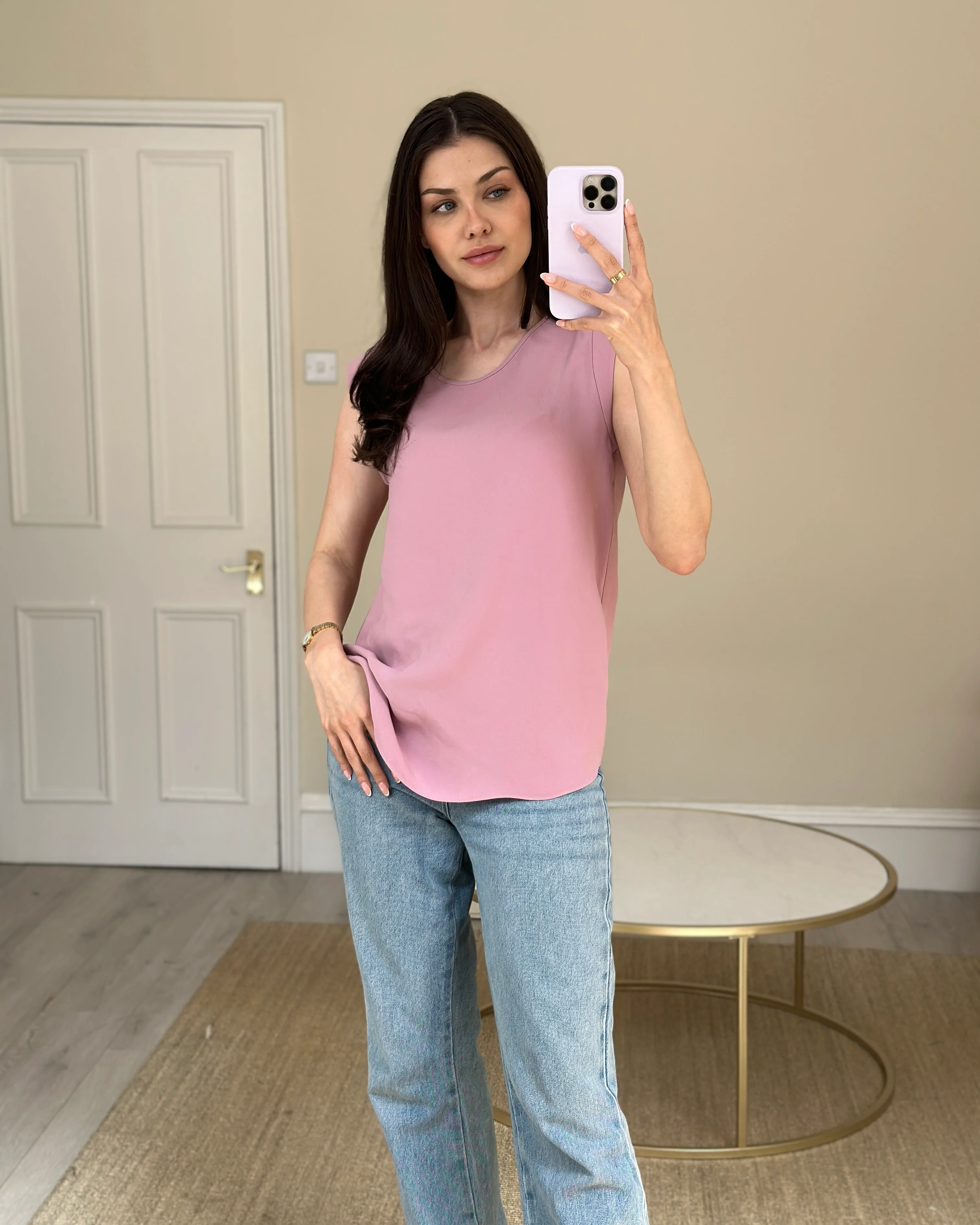 Loro Piana Light Purple Matt Sleeveless Silk Shirt IT 42 (UK 10)Â