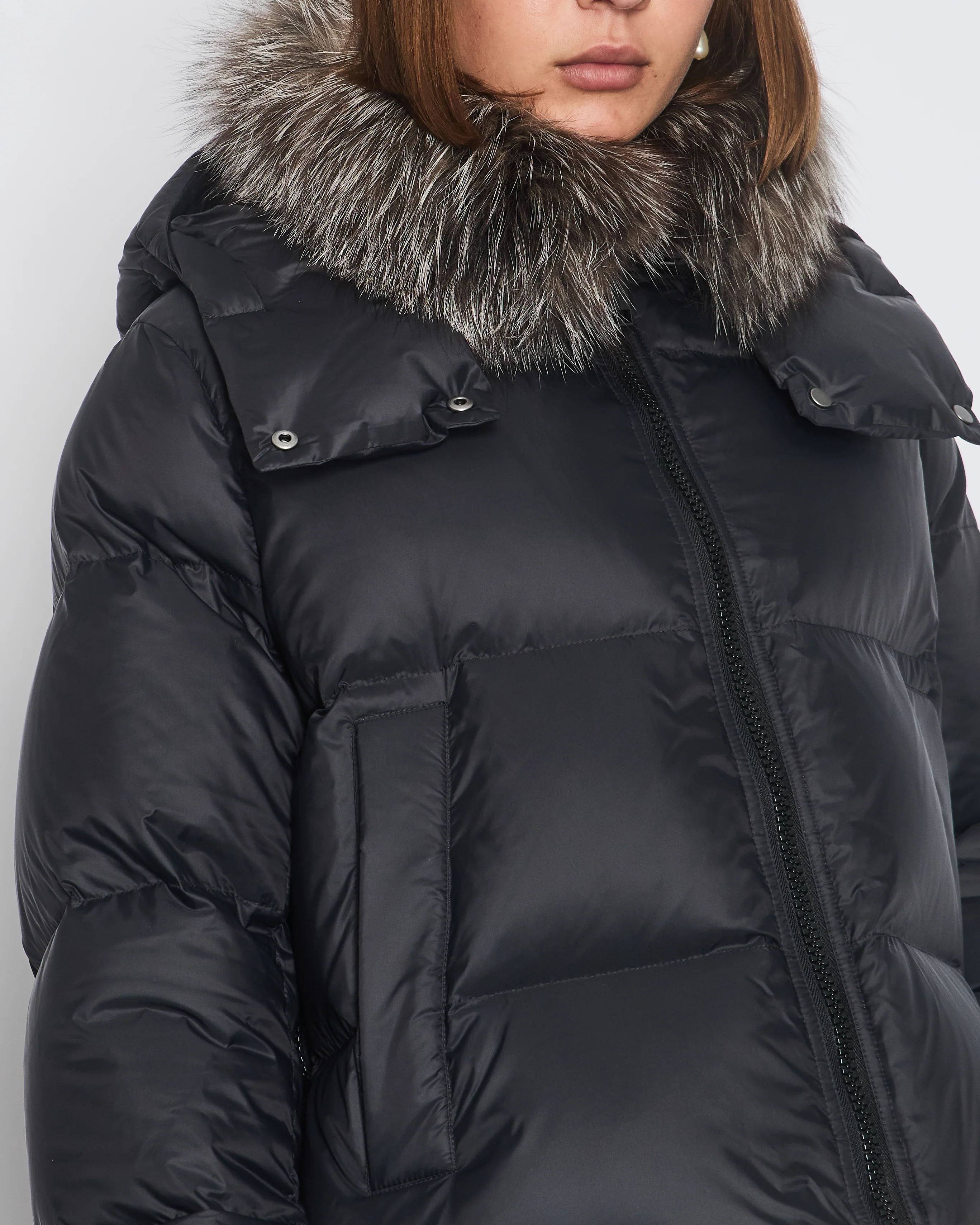Yves Saloman ARMY Black Cropped Puffer Coat with Detachable Fur Collar Size FR 34 (UK 6)